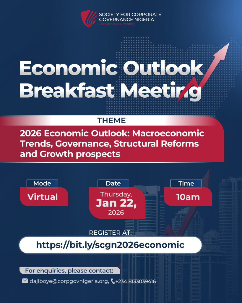 The SCGN 2026 Economic Outlook session aims to provide members with insights into Nigeria’s economic trajectory, highlighting key reforms, growth prospects, and practical implications for businesses and the professional community. The session will also foster dialogue on strategies to leverage economic developments for sustainable growth.