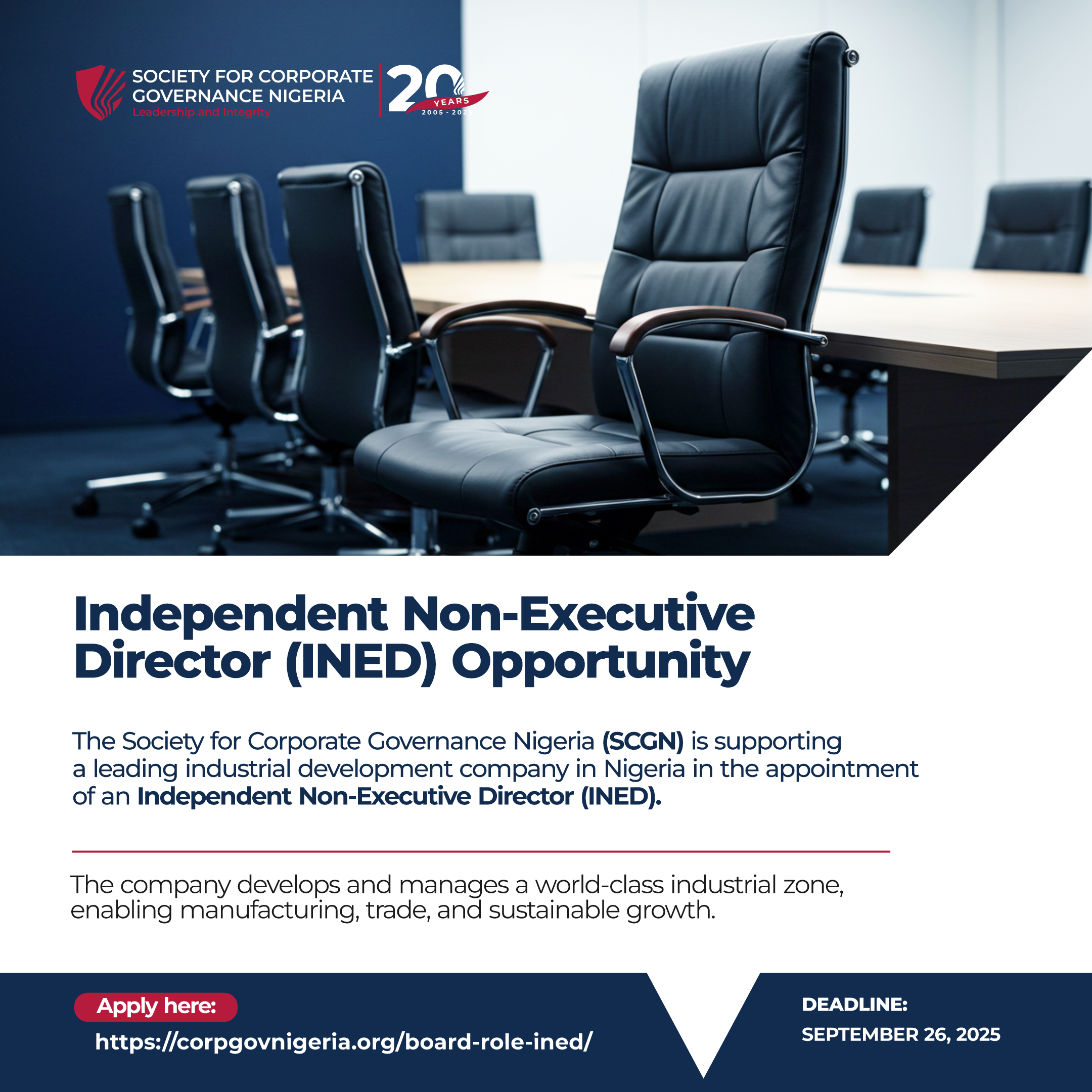 As part of this ongoing effort, we are assisting a leading industrial development company in Nigeria to appoint an Independent Non-Executive Director (INED) to its Board. This role is critical in strengthening governance, providing strategic oversight, and advancing the company’s vision of becoming the preferred industrial hub in West Africa.